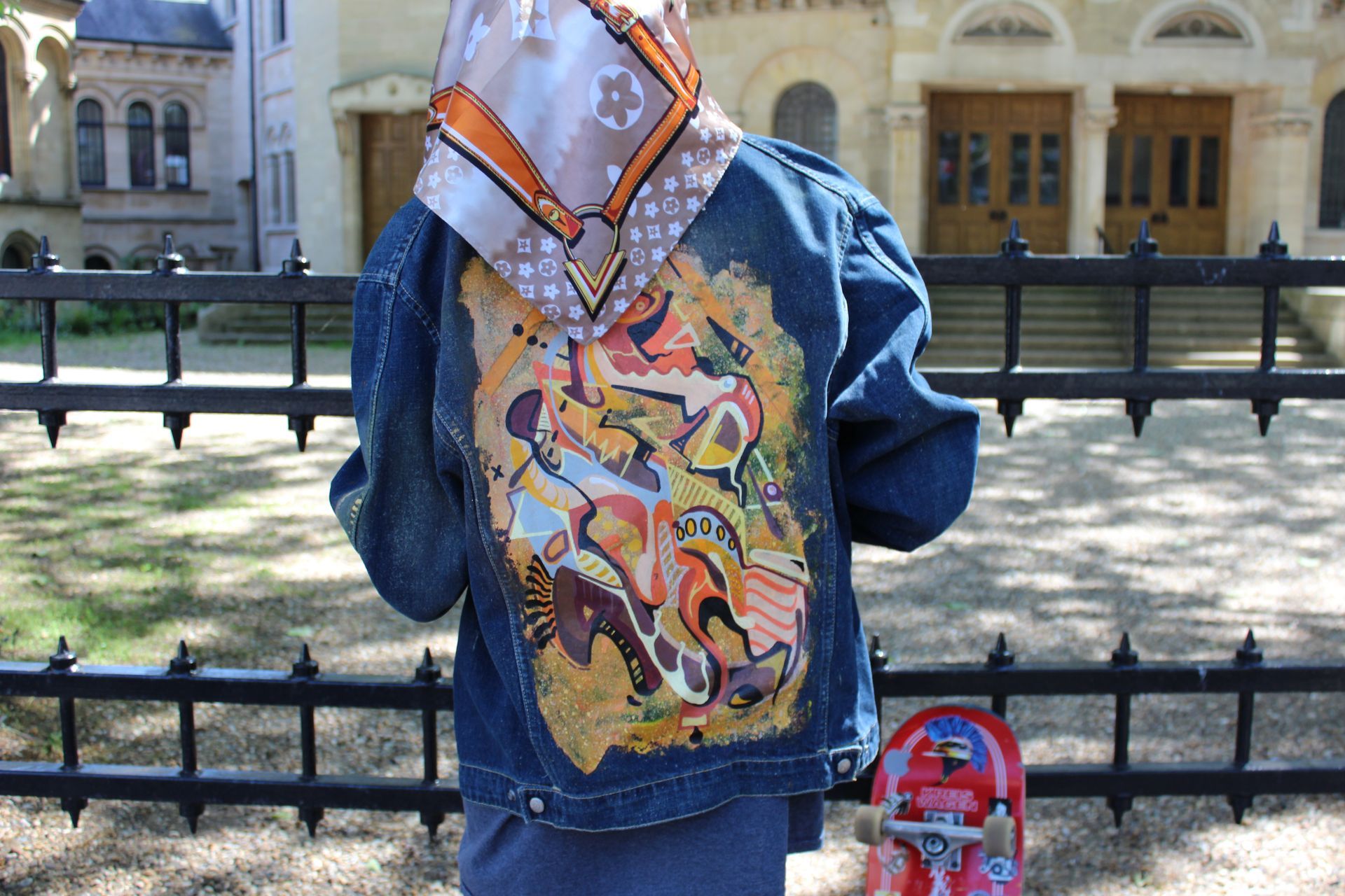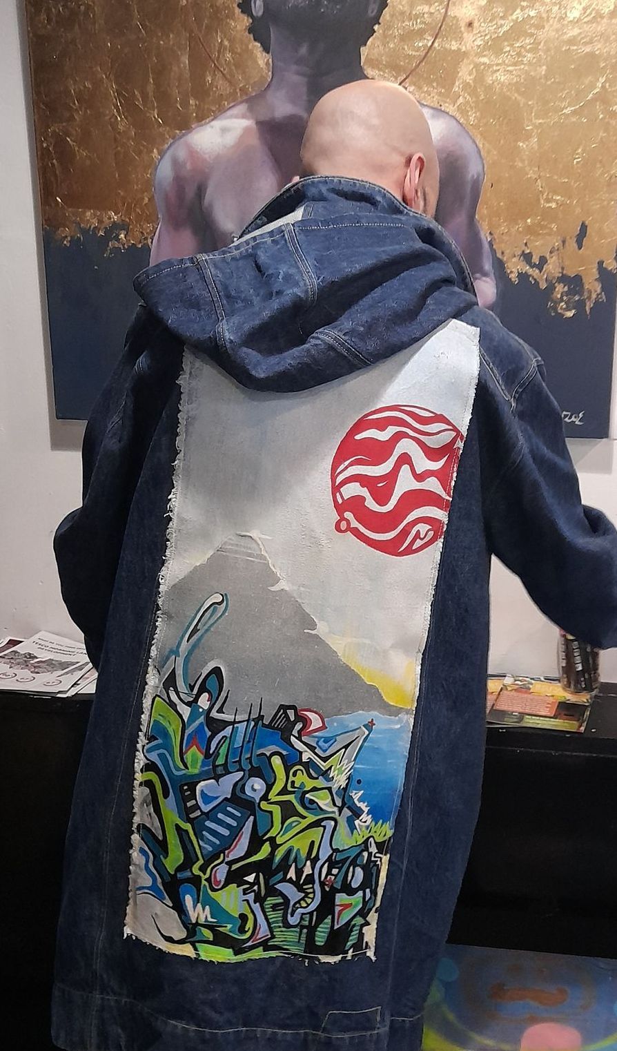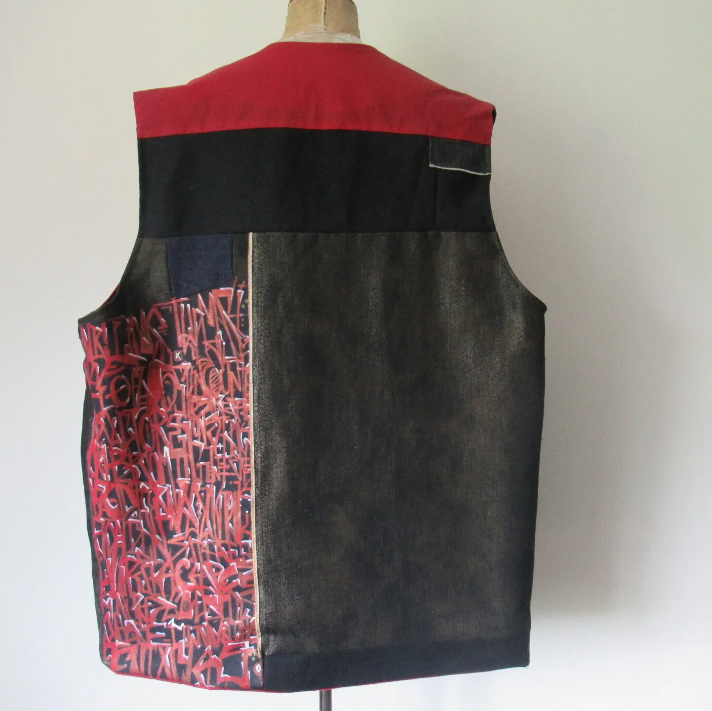An Original Uvawrld Design. Sleeveless wax fabric with a denim back. Available with or without signature artwork from our tailors