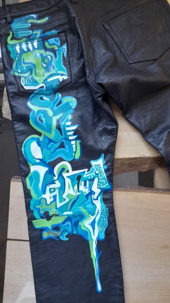 Using reclaimed denim in combination with waxed cotton. Of course we have special editions with hand painted artwork available.