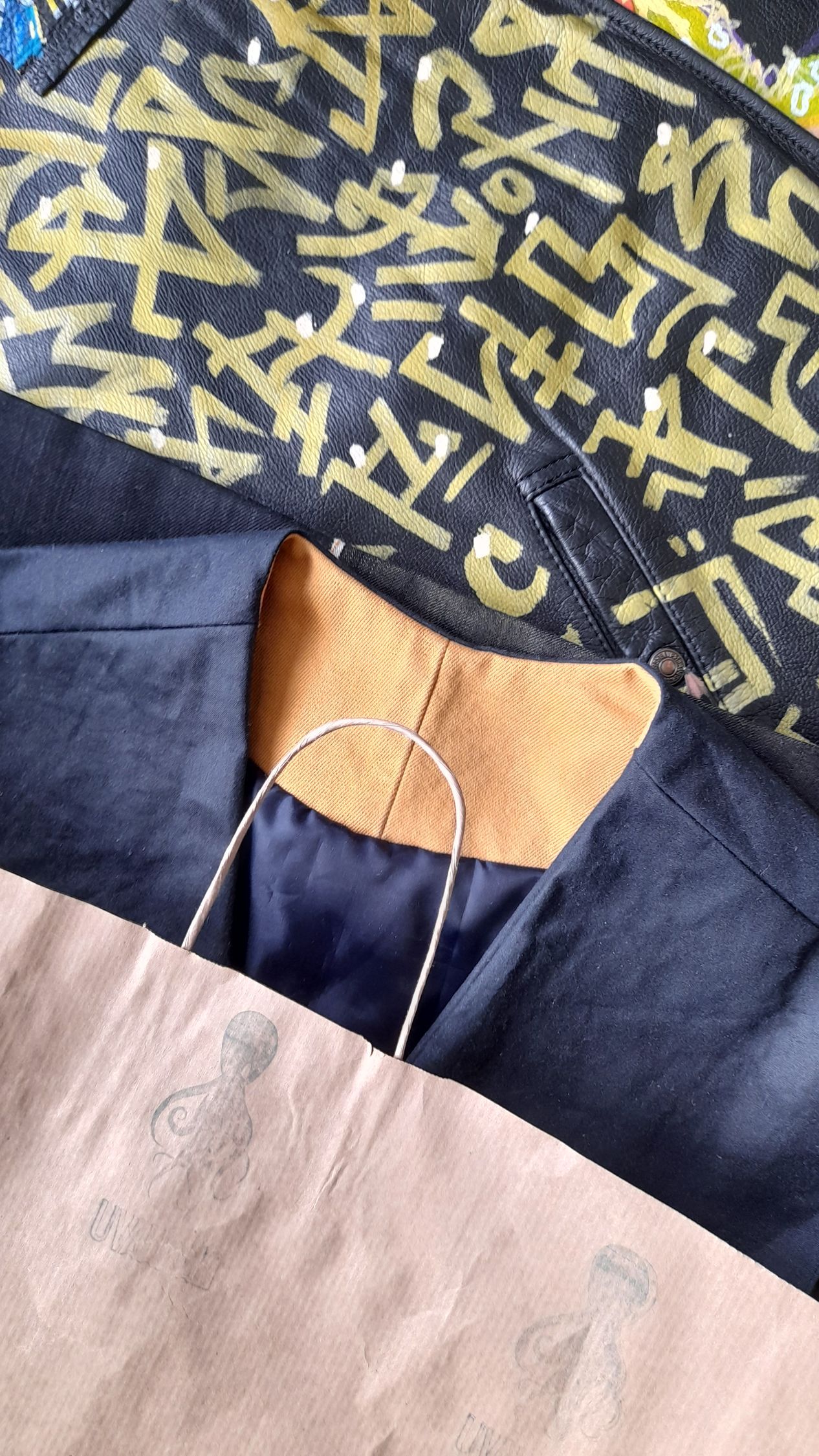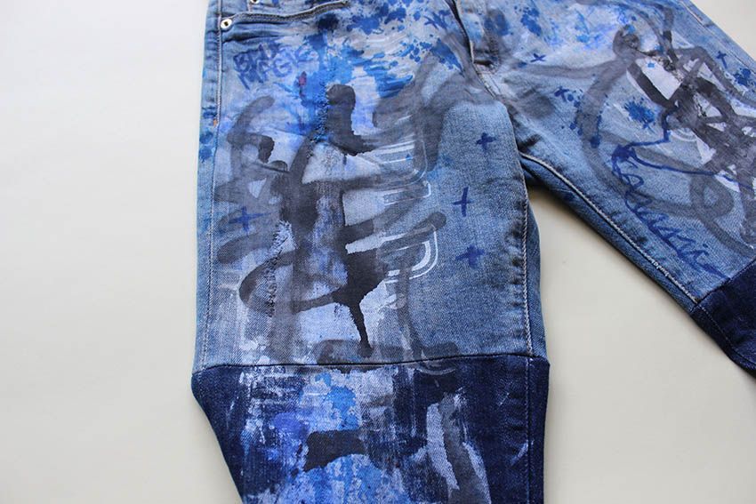 Using reclaimed denim in combination with waxed cotton. Of course we have special editions with hand painted artwork available.
